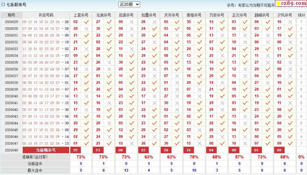 七乐彩048期 彩宝贝专家杀号码预测图表