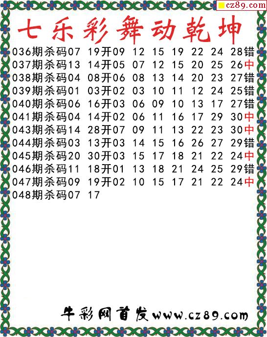 七乐彩2026048期流光岁月杀码图谜 10中3