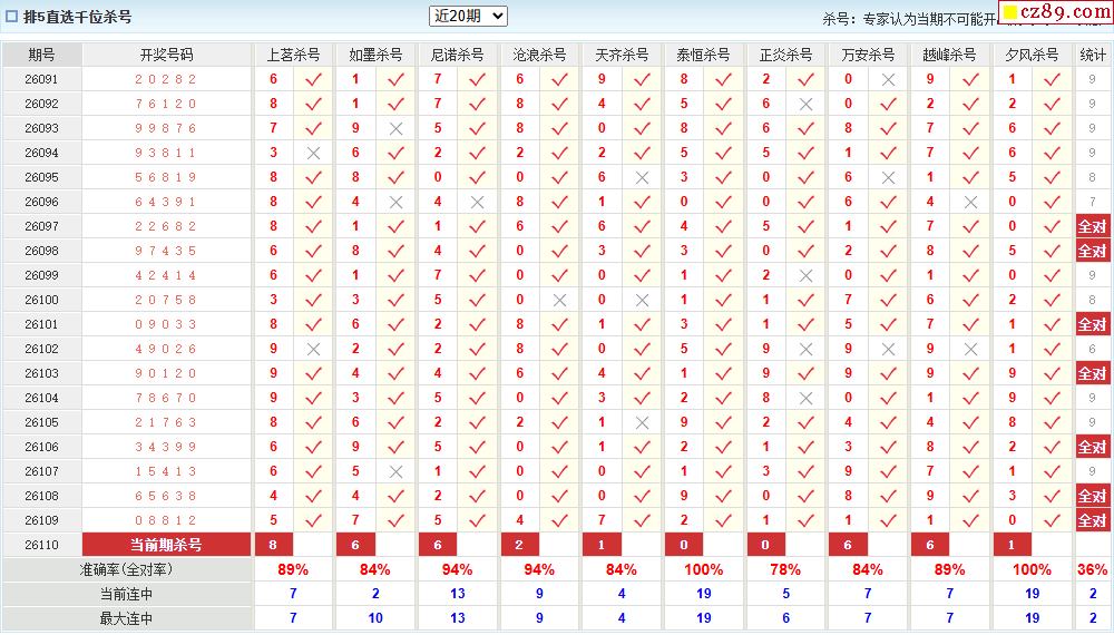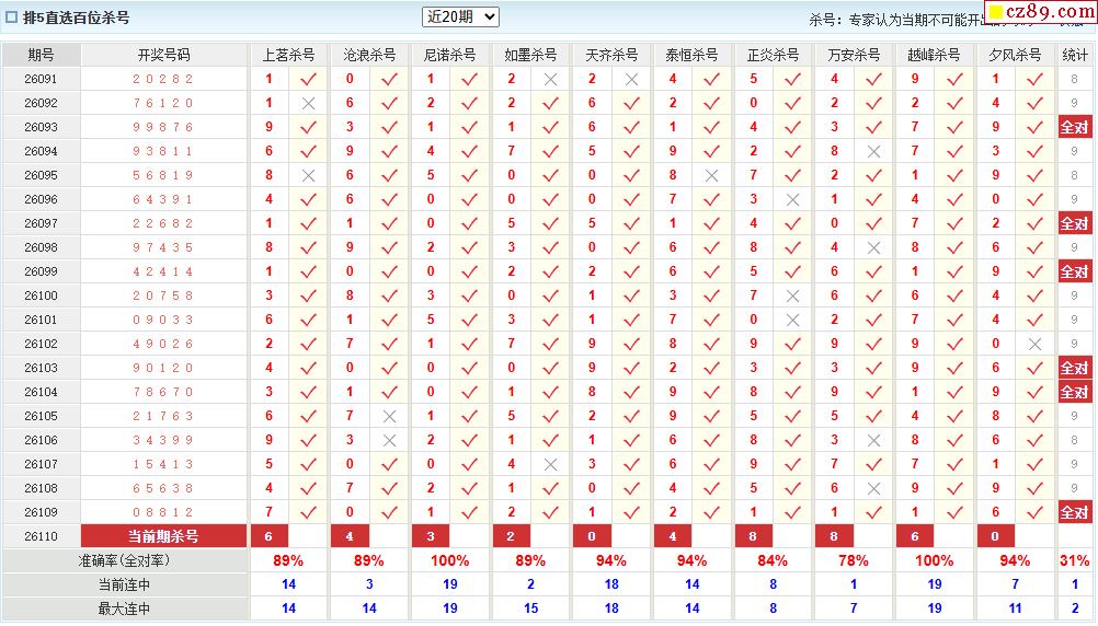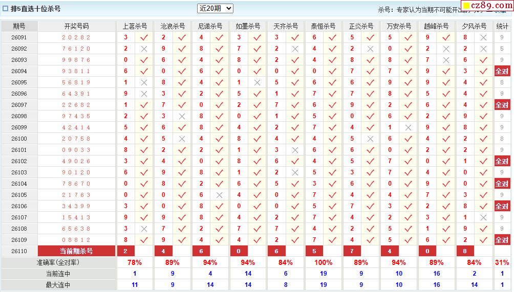 110期彩票专家体彩P5杀号推荐图表