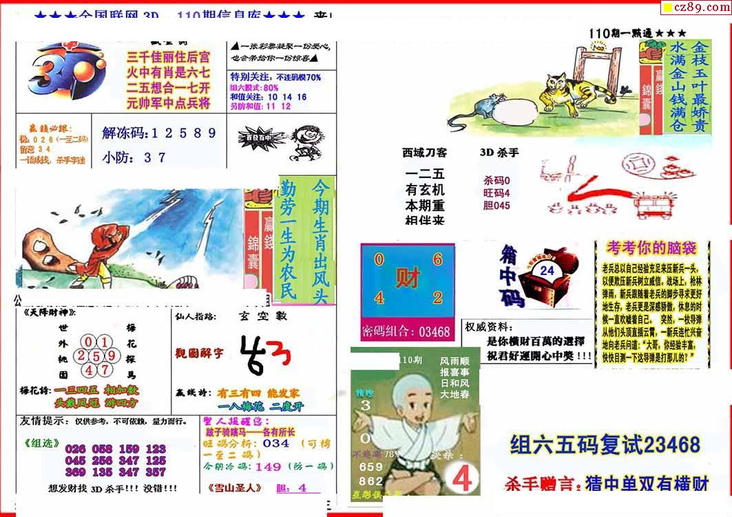 杀手+鑫马快报+字迷汇总26年110期3d图谜