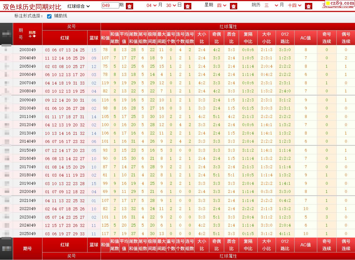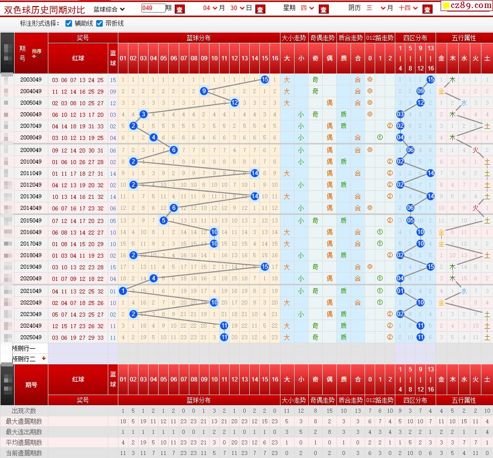 049期双色球历史同期对比图