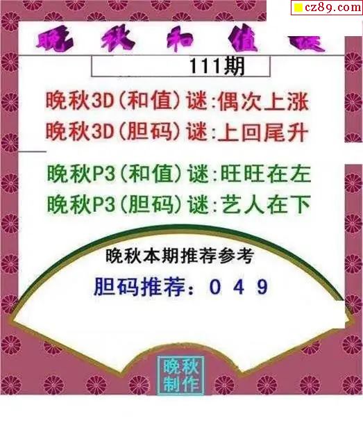 晚秋和值谜2026111期3d图谜