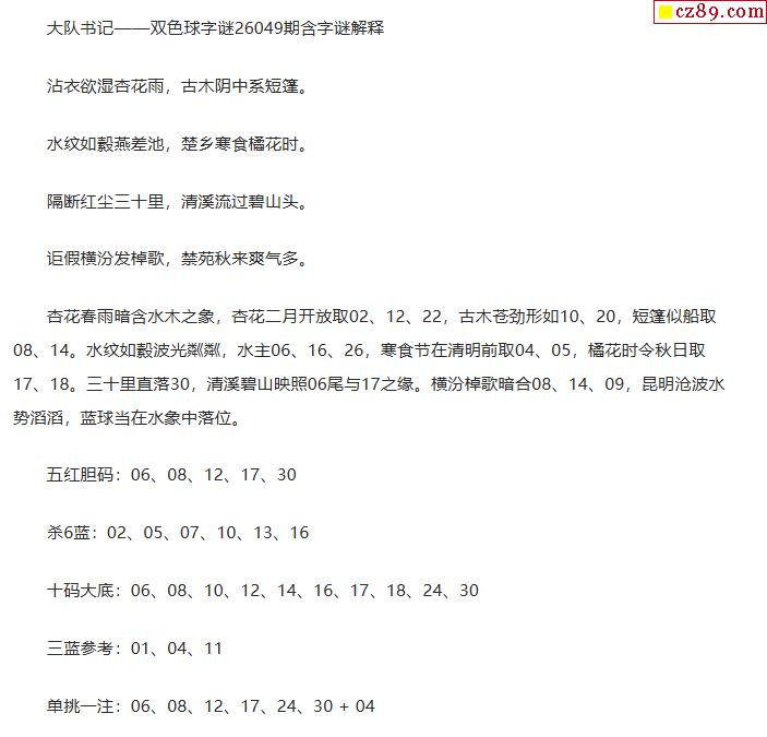 26年福彩双色球049期 左岸春风一语断蓝另版