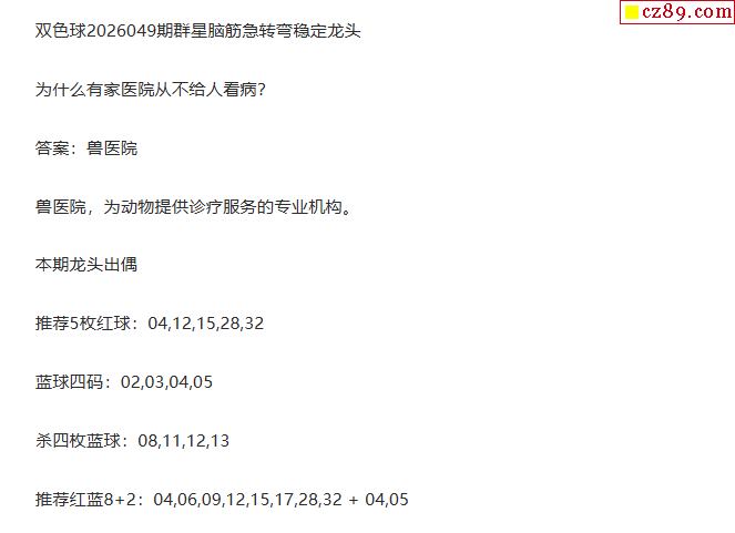 26年福彩双色球049期 群星脑筋急转弯定龙头字谜
