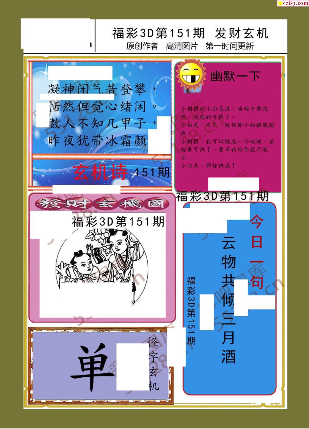 发财玄机19年151期福彩3d画谜
