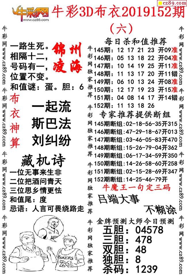 牛彩版布衣精选合辑152期3d图谜(独家推荐)