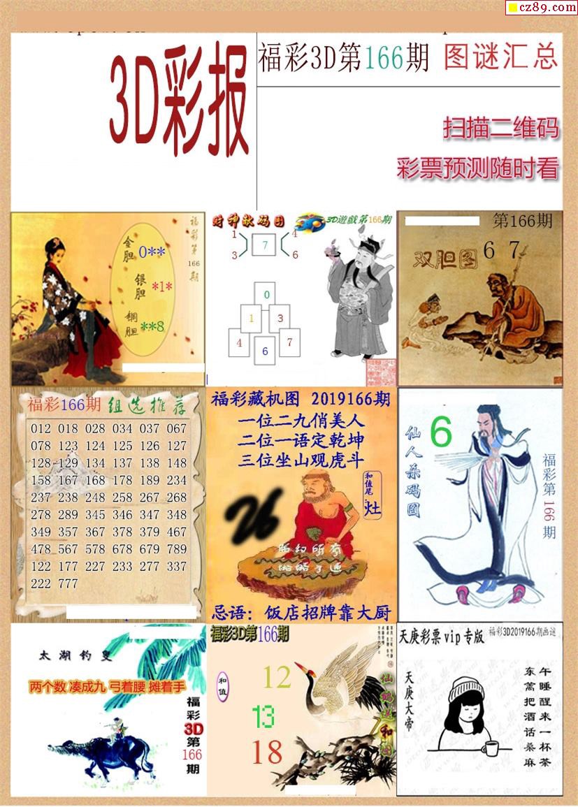 选号彩报19年166期3d画谜彩报【牛彩版】