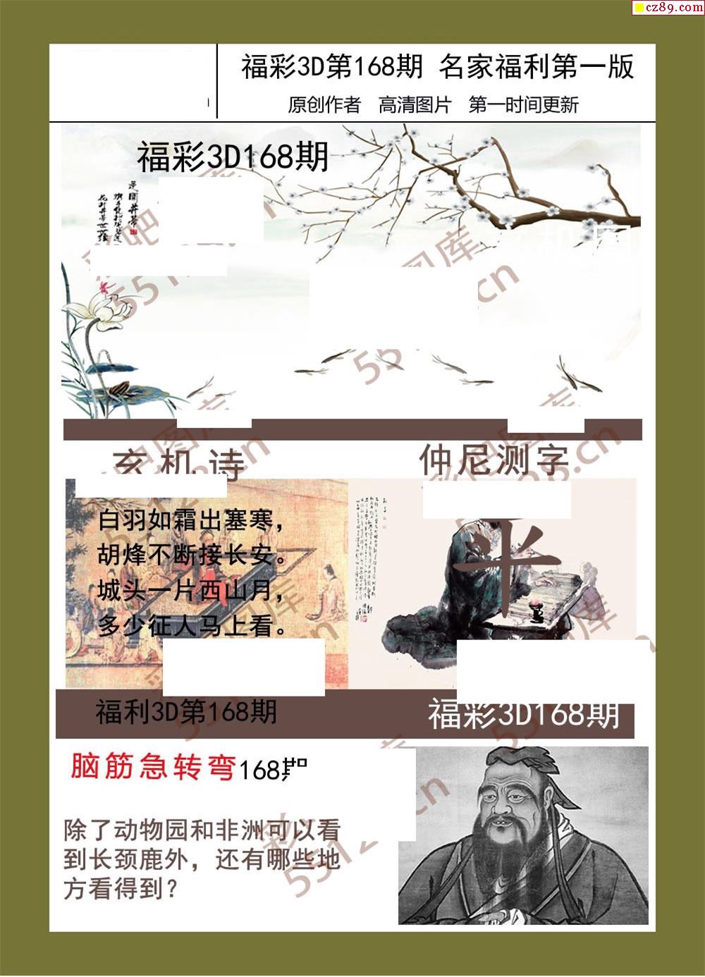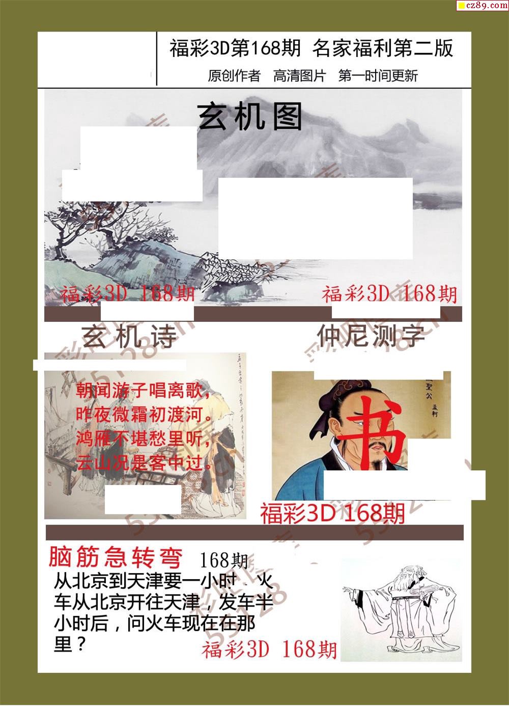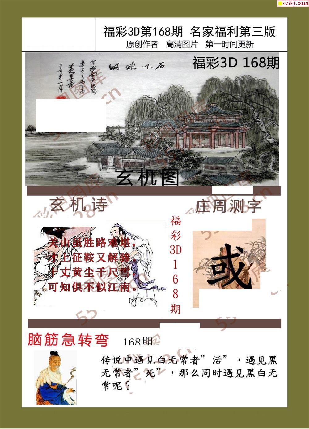 福彩名家福利彩票3d19年168期图谜