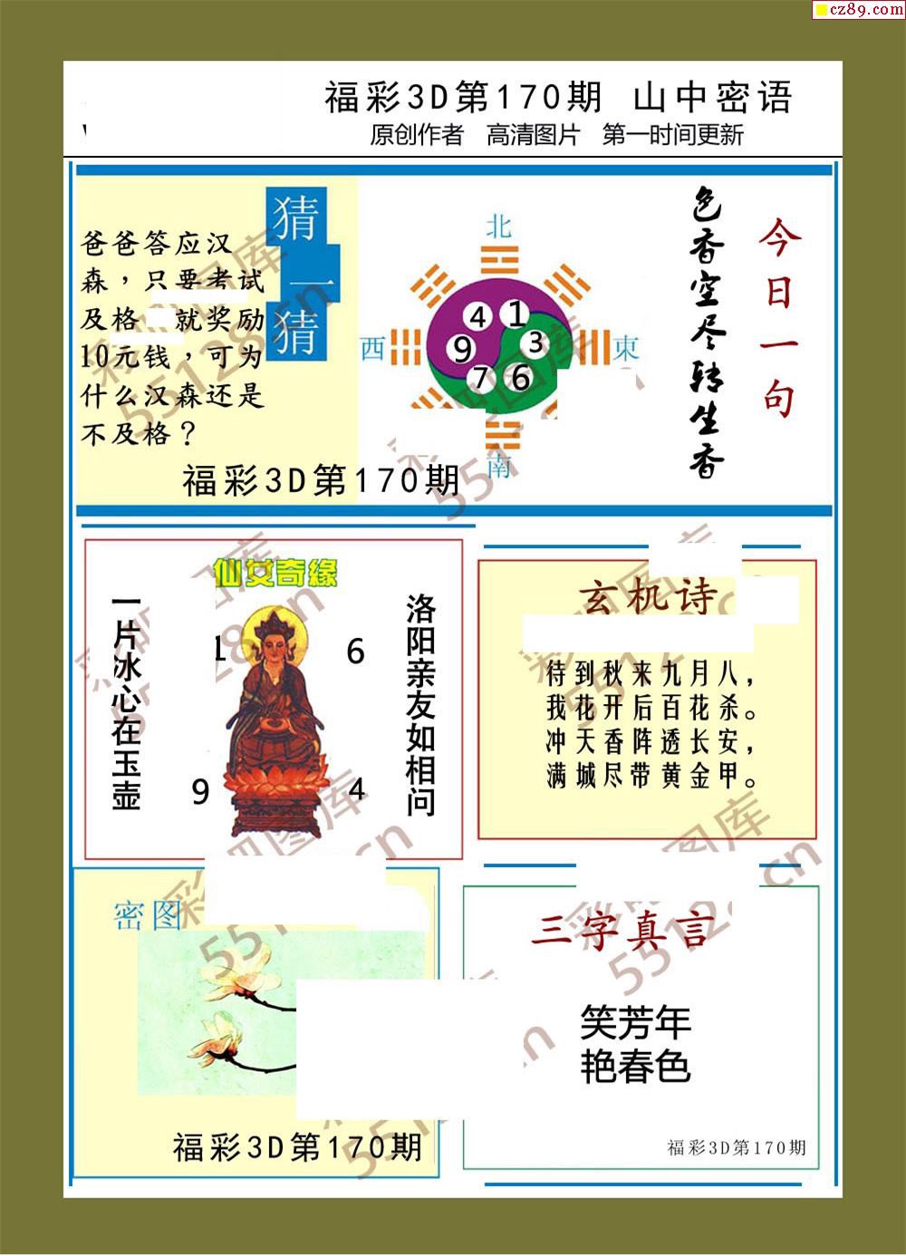 福彩3d19年170期山中密语彩报