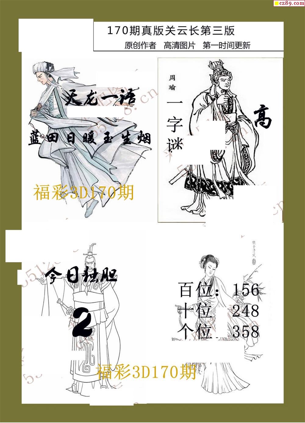 19年170期福彩3d真版关云长图谜