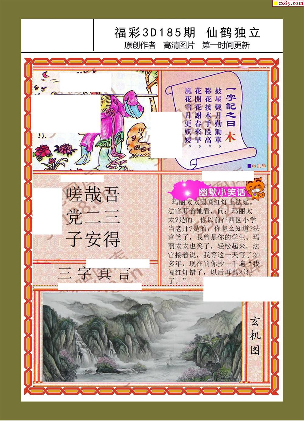 鹤立独行19年185期福彩3d图迷