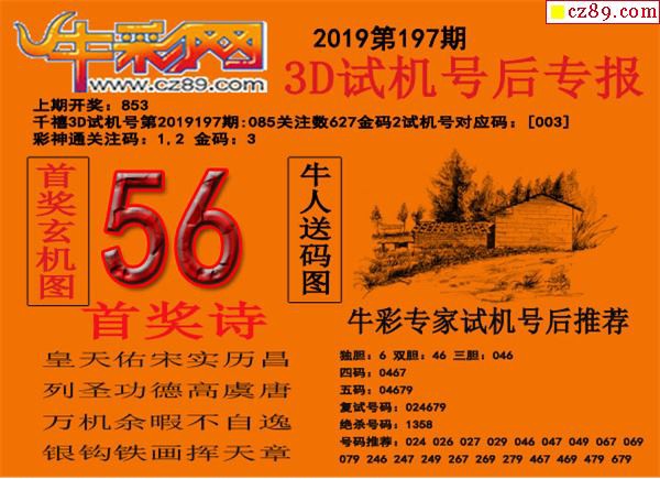 2019197期3d试机号后牛彩网专报