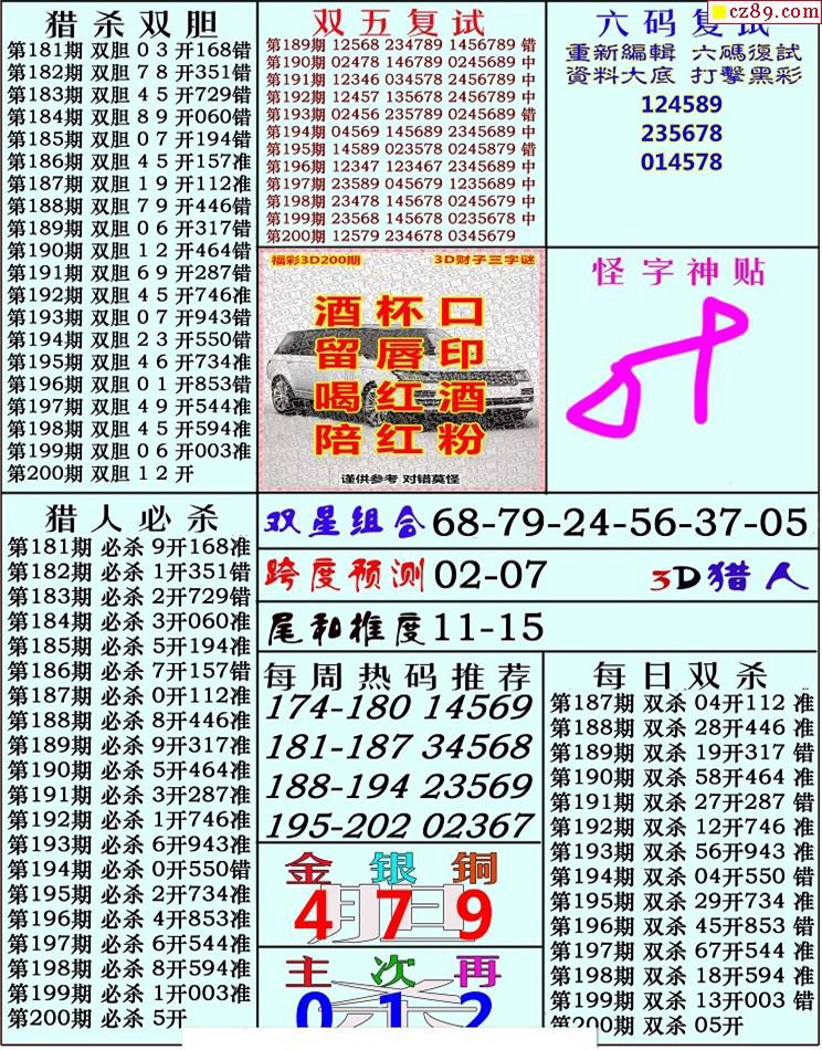 猎人19年第200期福彩3D彩报