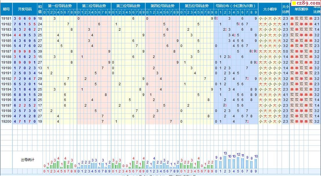 201期体彩排列5近期历史号码图表