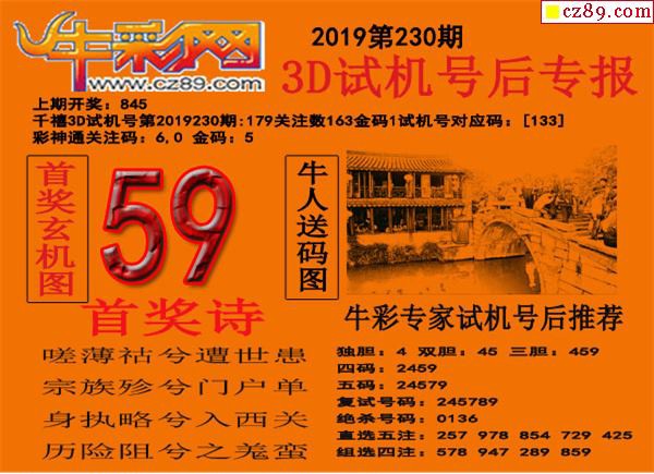 2019230期3d试机号后牛彩网专报