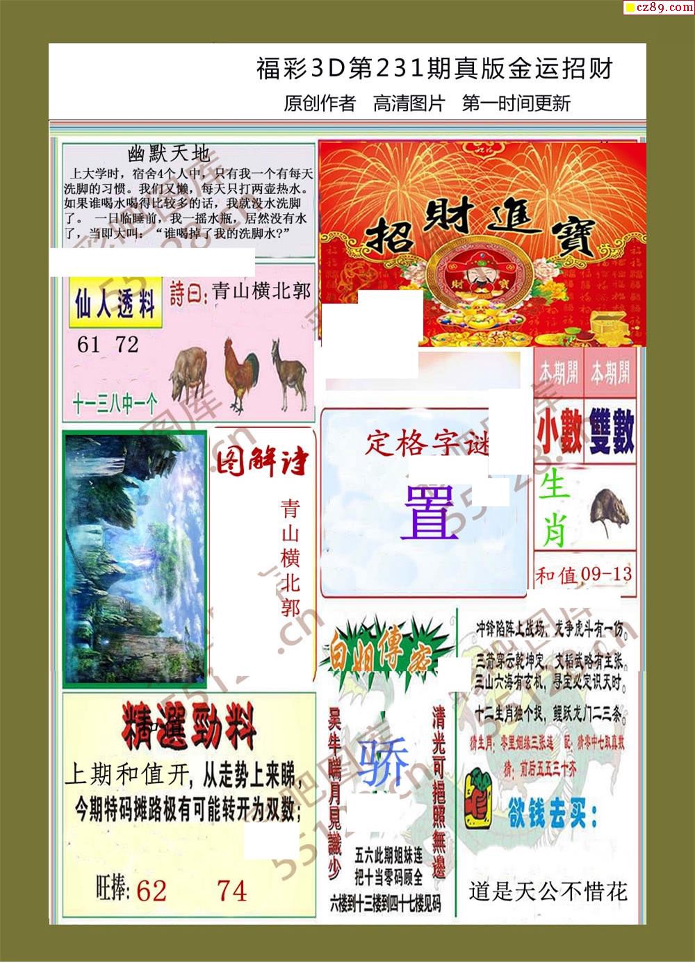 19年231期福彩3d金运招财画迷