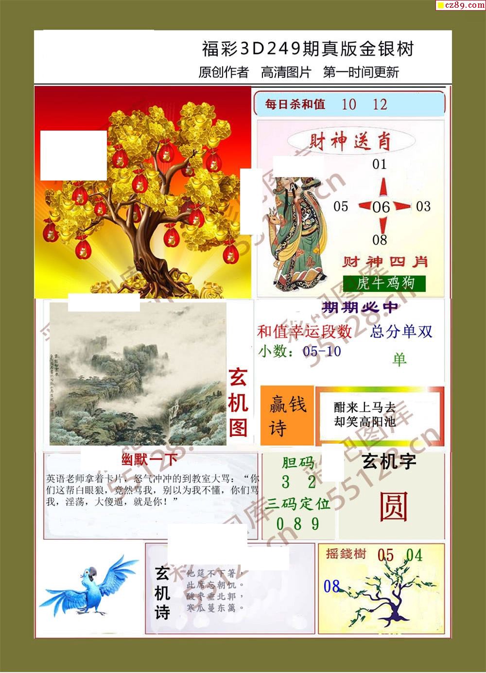 金银树19年249期福彩3d字画谜