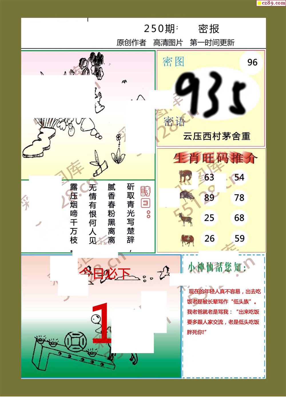 香岛福彩3d19年250期密报图