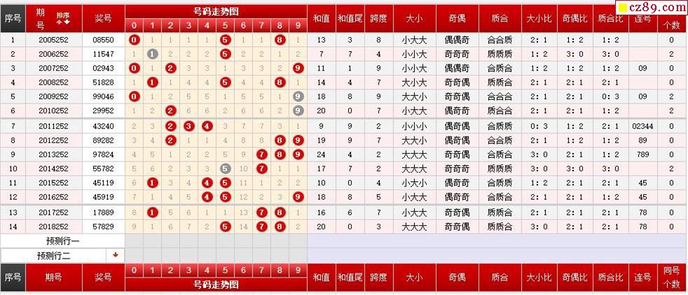 第252期体彩P3历史同期对比