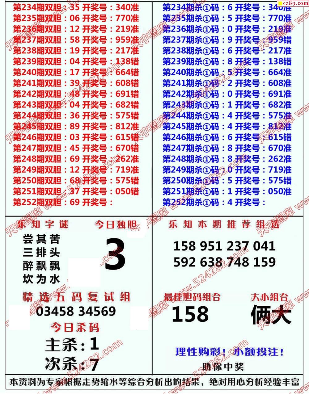 乐知专家19年第252期福彩3D快报
