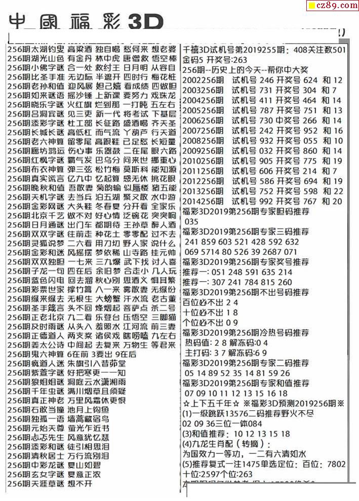 杀手+鑫马快报+字迷汇总19年256期3d图谜