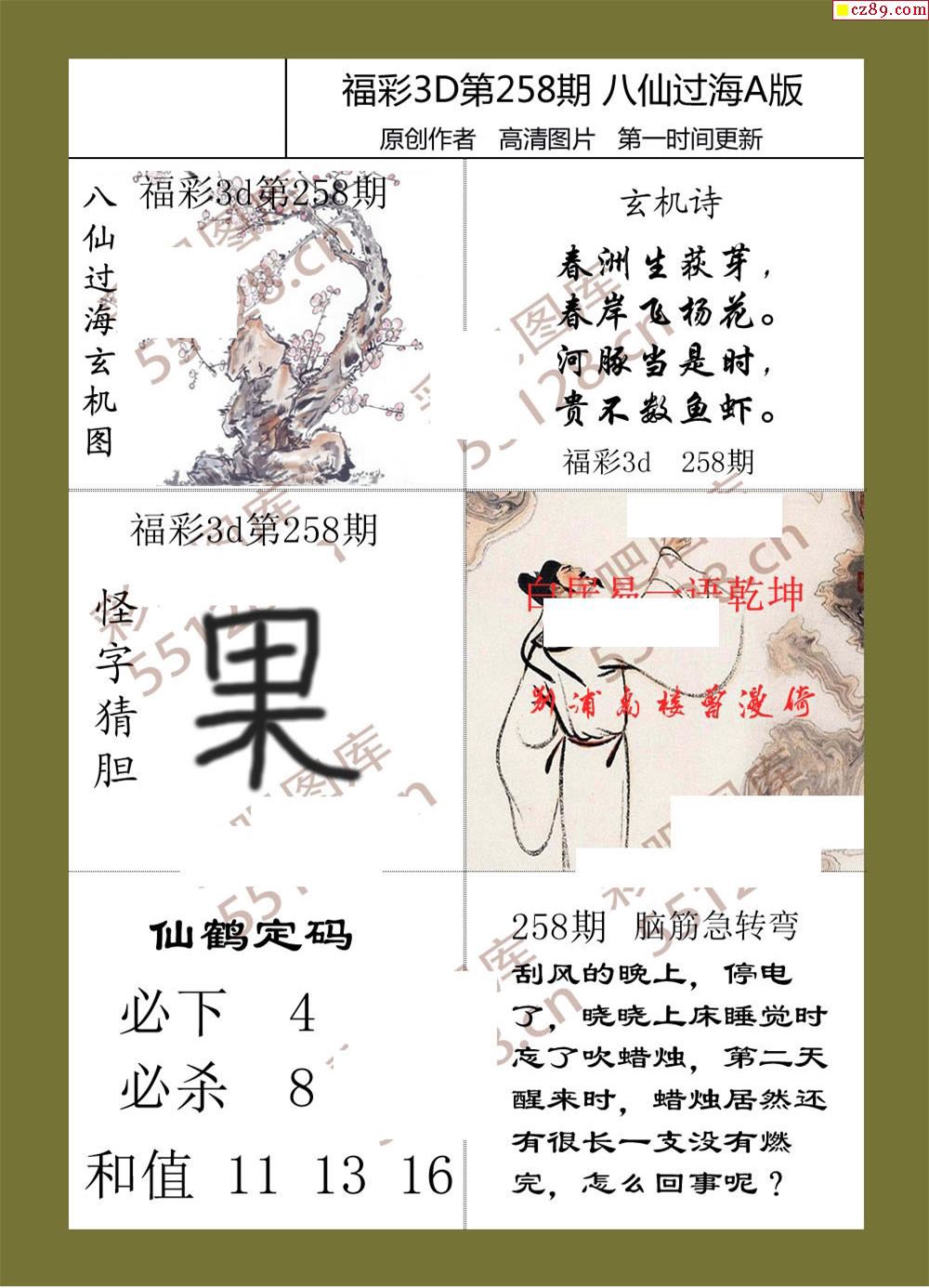 八仙过海19年258期3d综合图迷