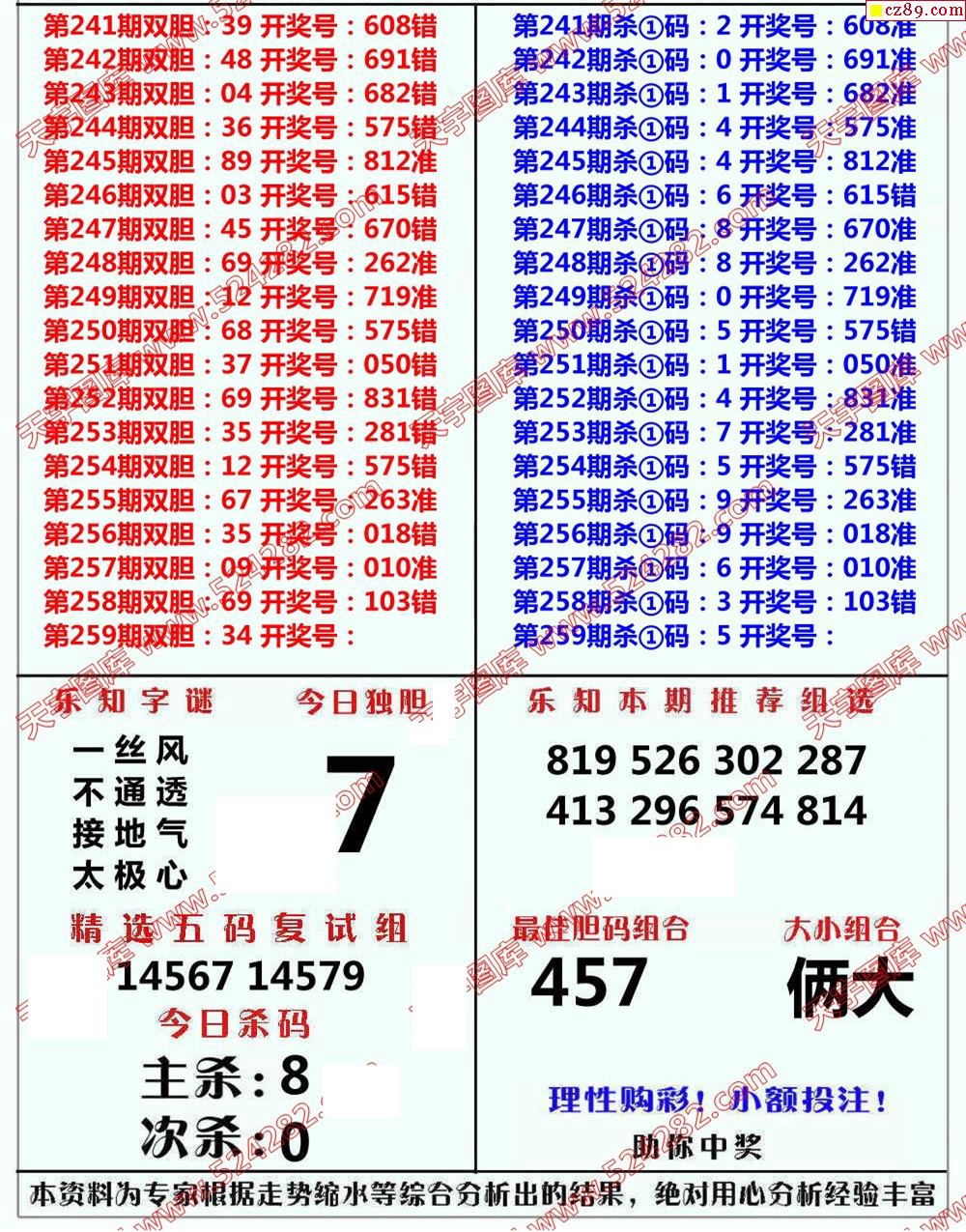乐知专家19年第259期福彩3D快报