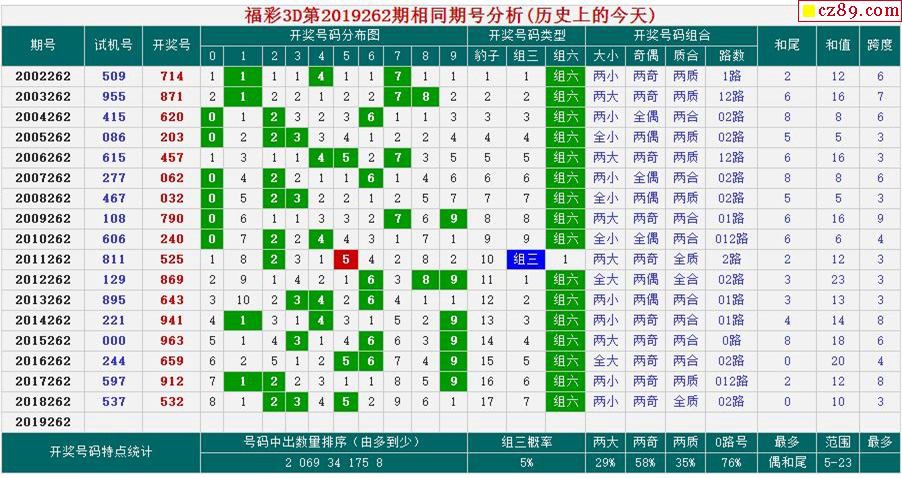 19年262期福彩3D相同期号分析(历史上的今天)