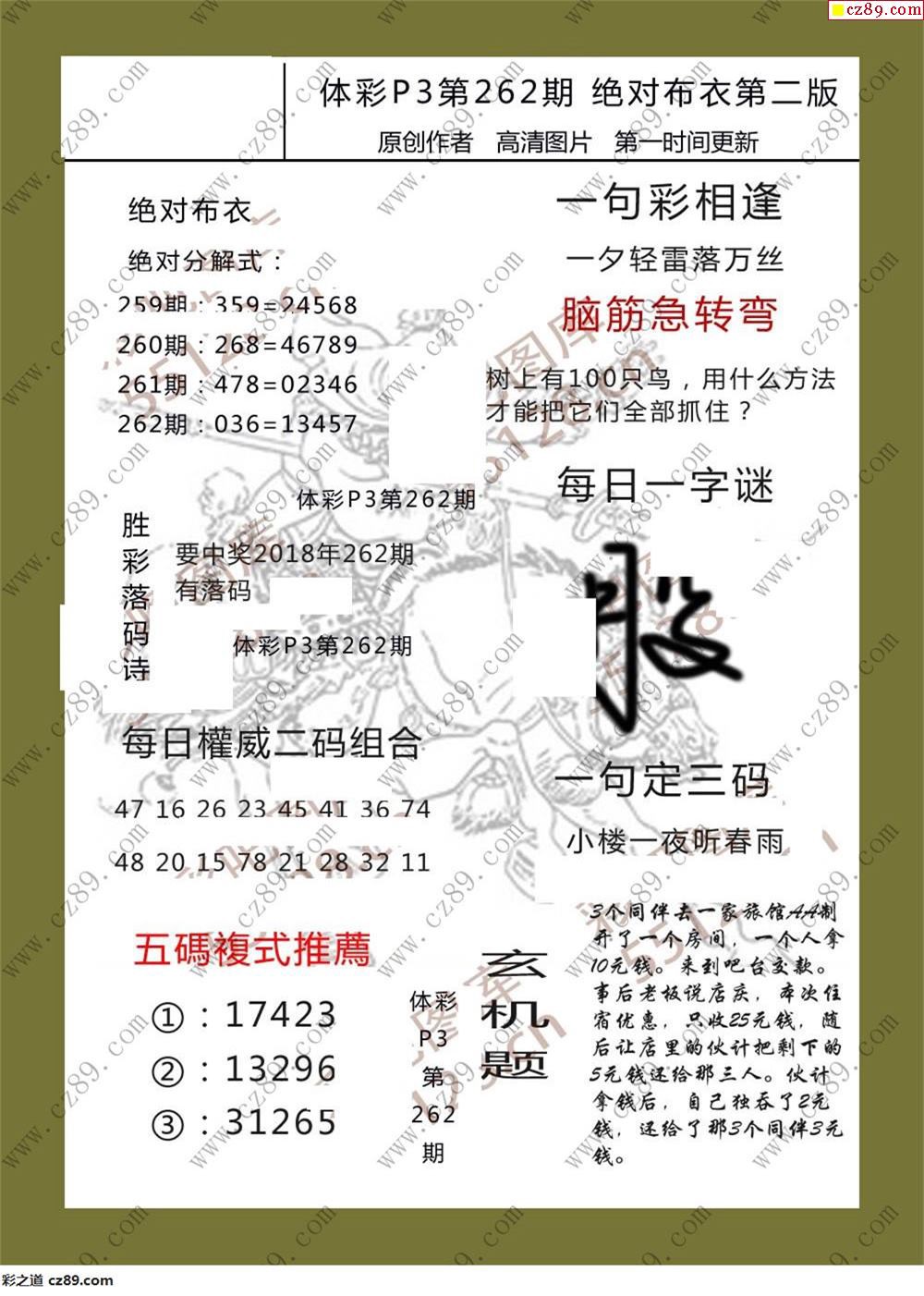 20年262期解精华布衣+好心人布衣+绝对布衣