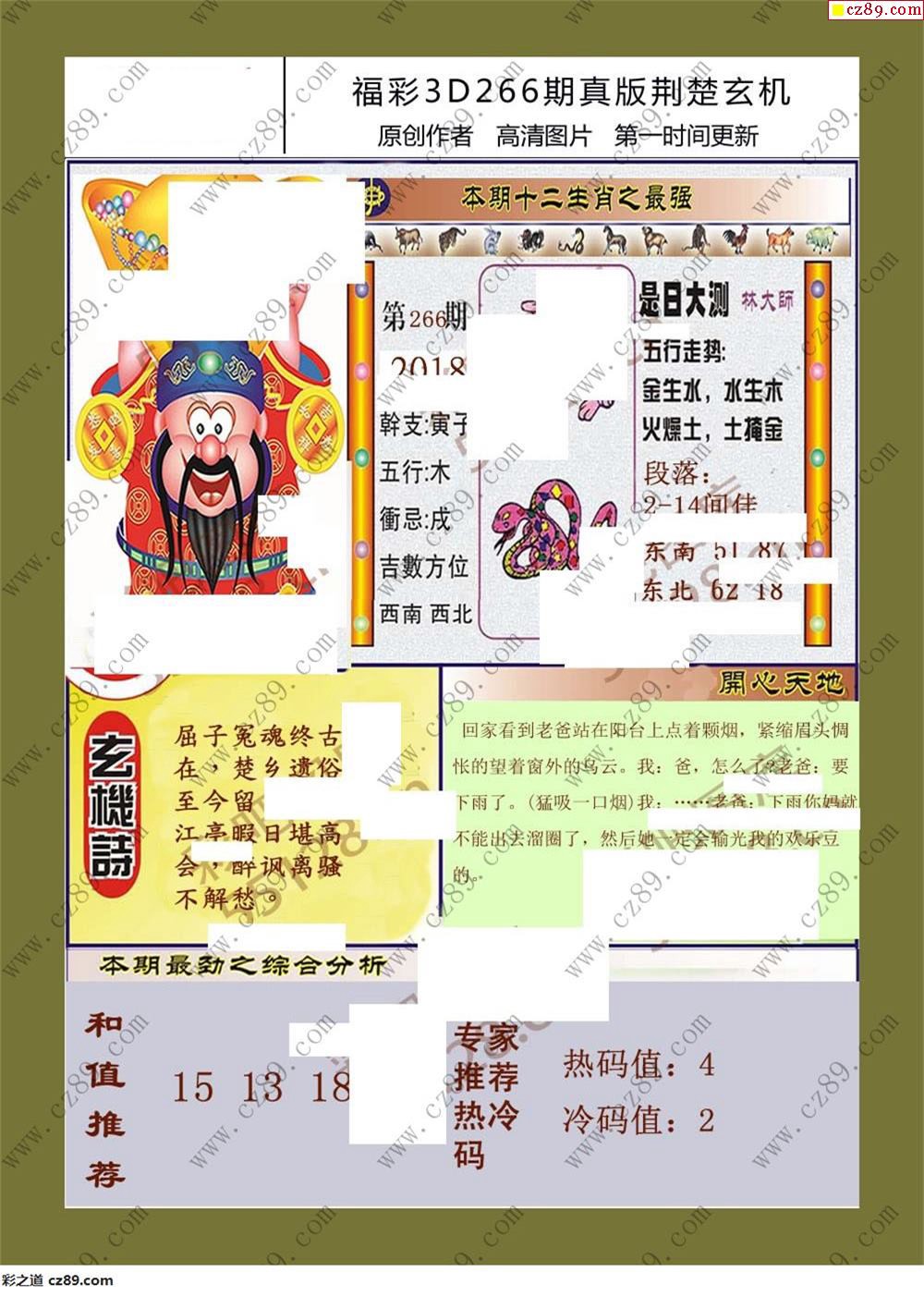 2019福彩3d266期真版荆楚玄机彩报