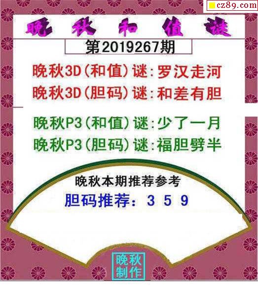 晚秋和值谜2019267期3d图谜