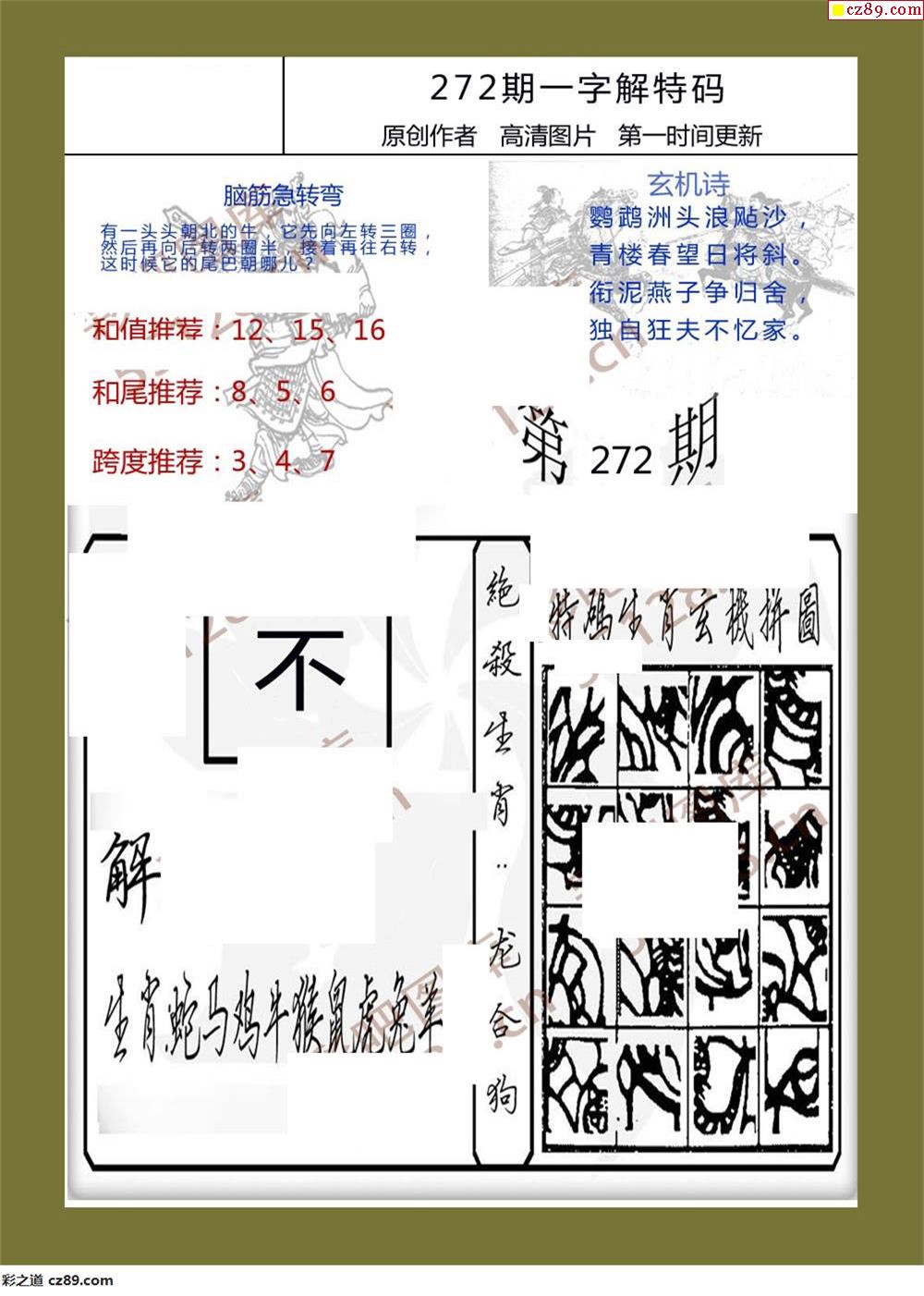 19年272期一字解特码福彩3d彩报