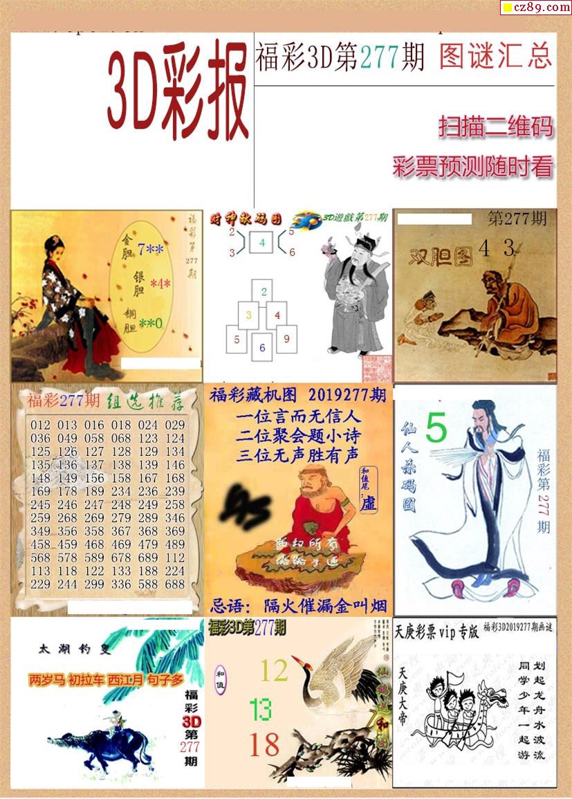 选号彩报19年277期3d画谜彩报