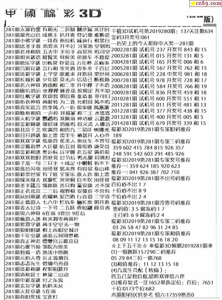 杀手+鑫马快报+字迷汇总19年281期3d图谜