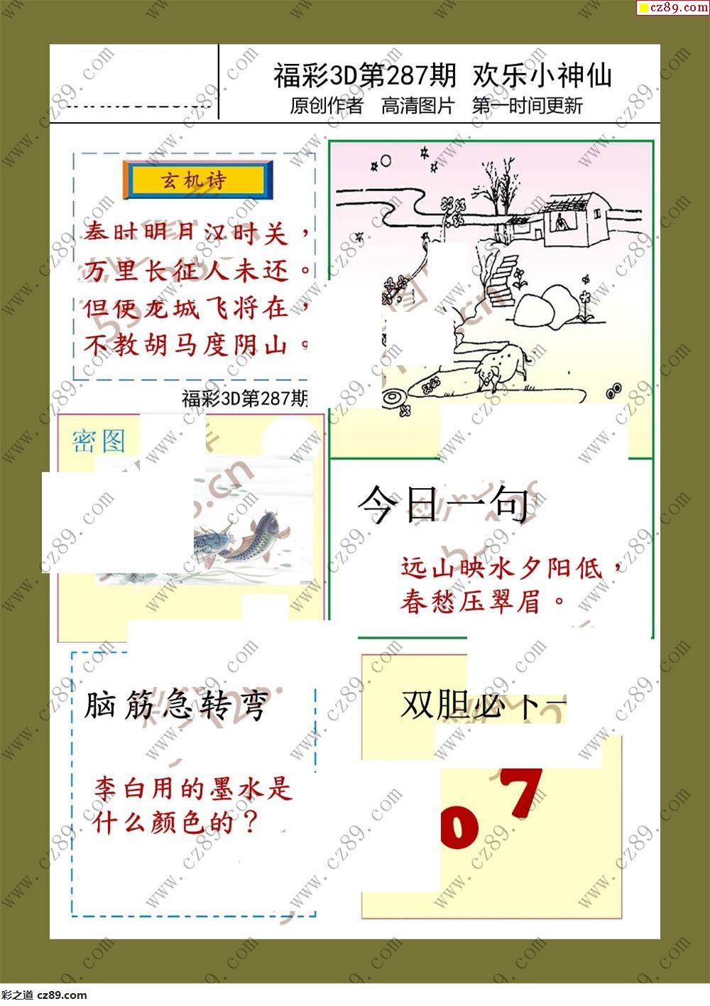 19年福彩3d287期欢乐小神仙预测图