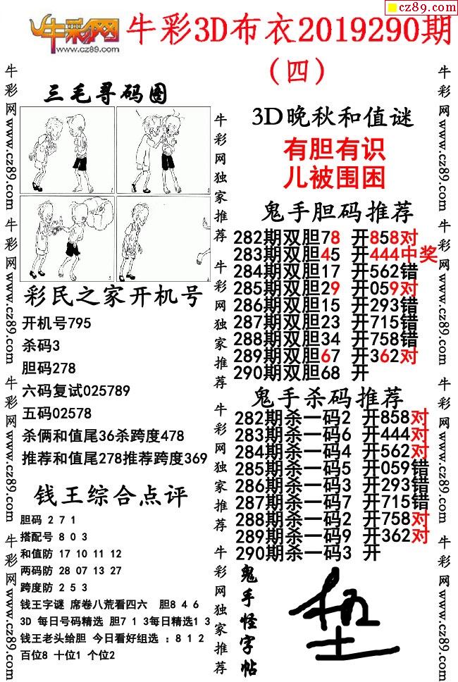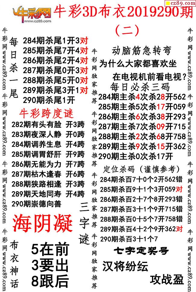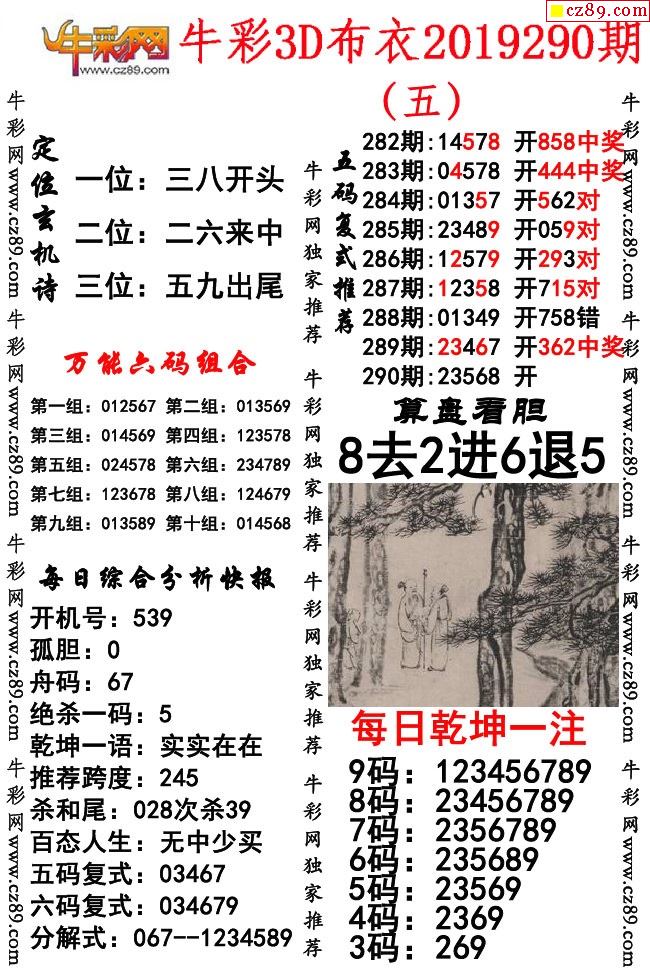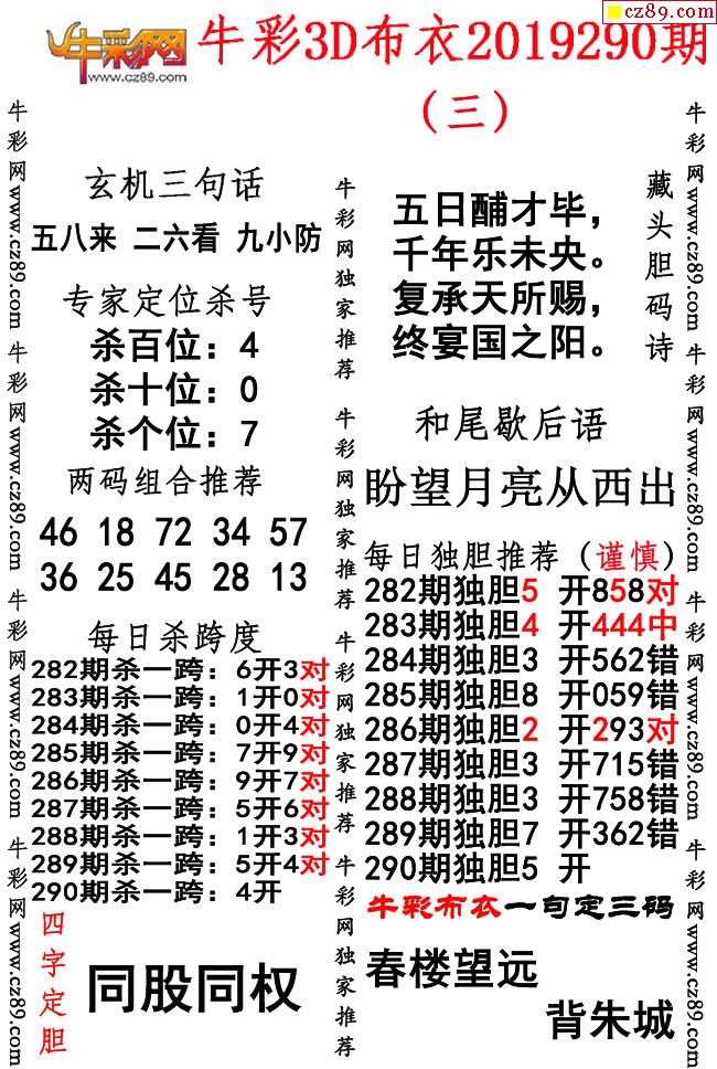 牛彩版布衣精选合辑290期3d图谜(独家推荐)