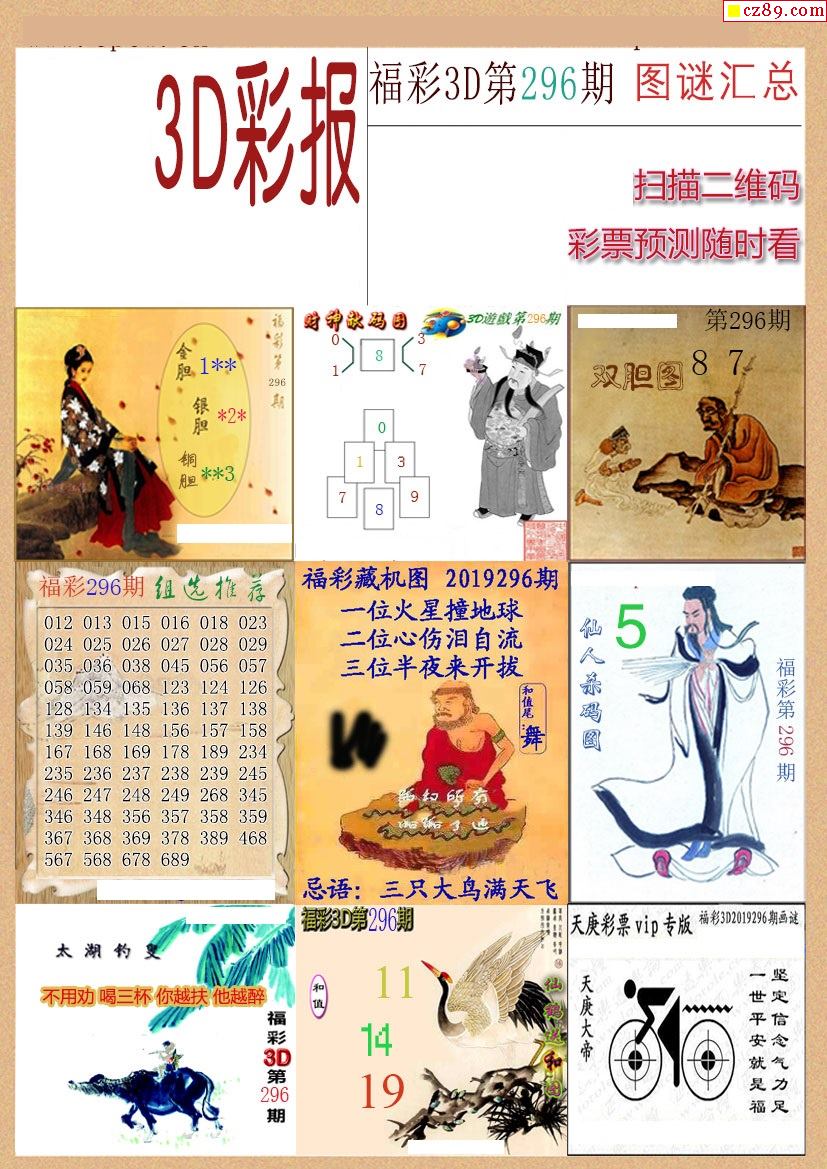 选号彩报19年296期3d画谜彩报