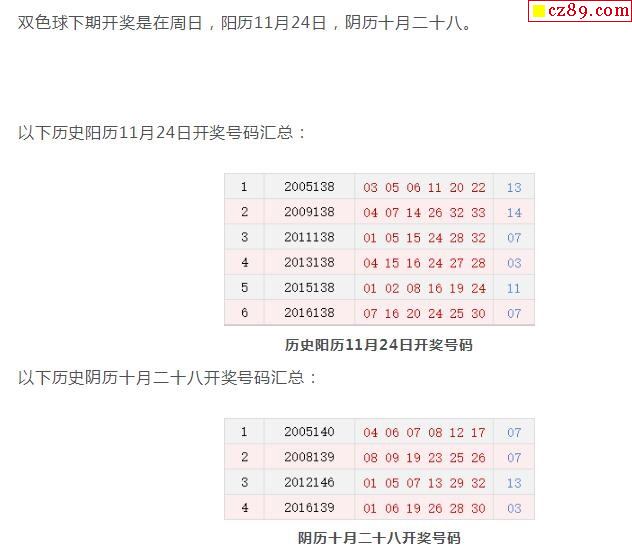 历史上的今天双色球11月24日开奖号码汇总