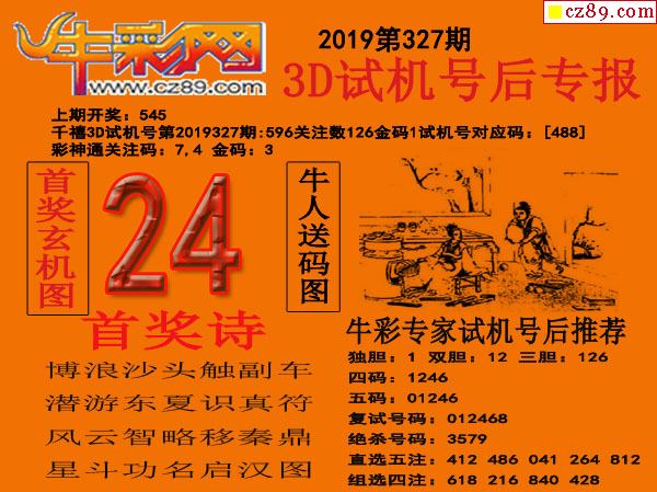 2019327期3d试机号后牛彩网专报