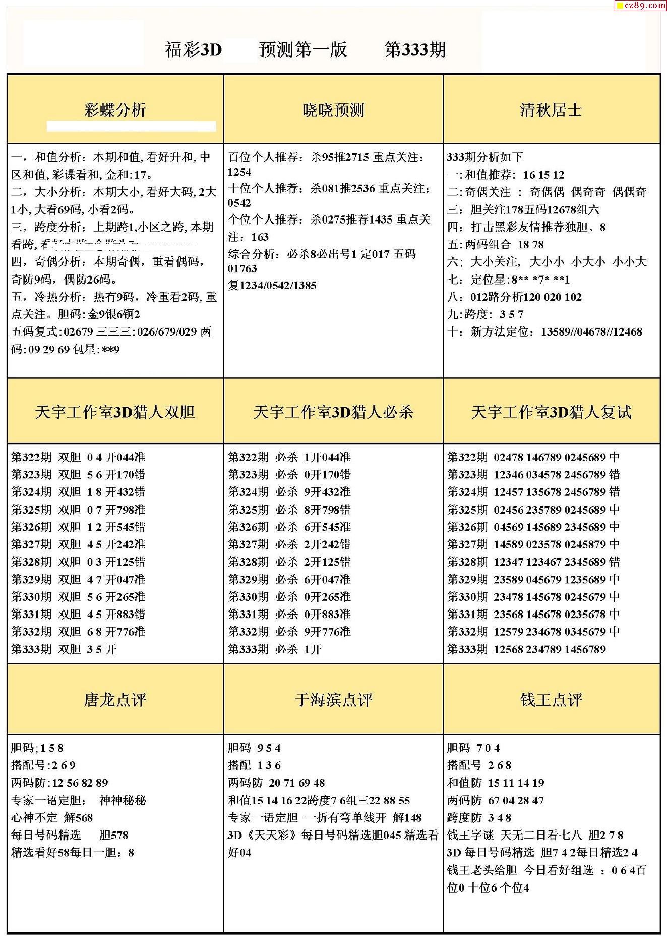 福彩3D333期图迷汇总(三)