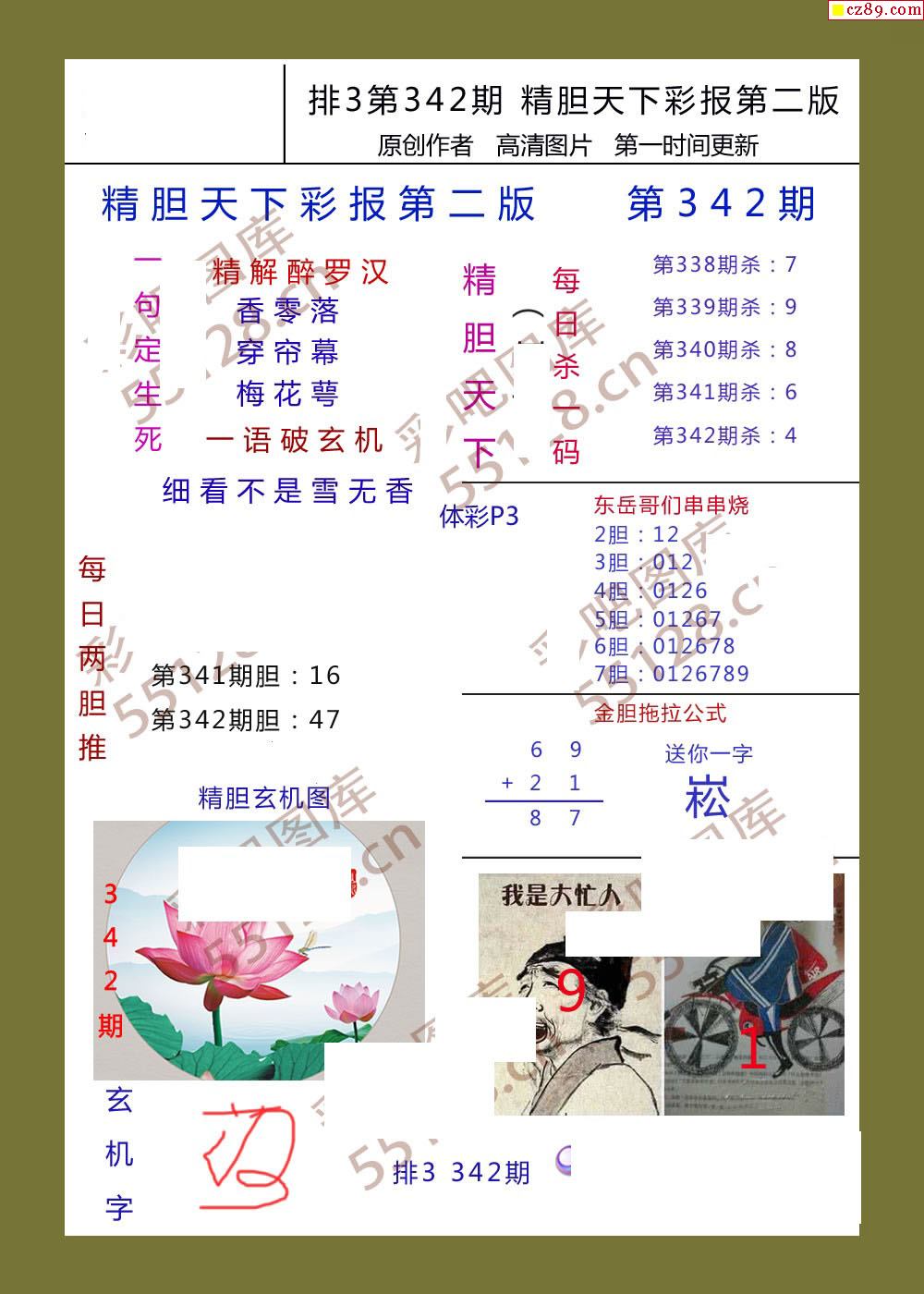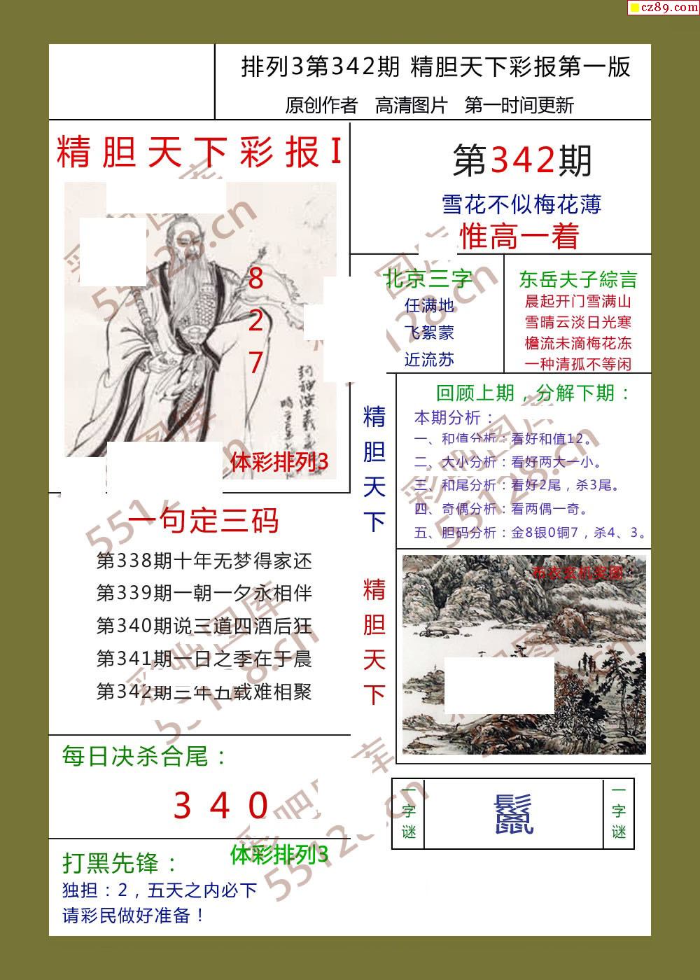 牛彩版体彩P3字谜彩报图19年342期打印版