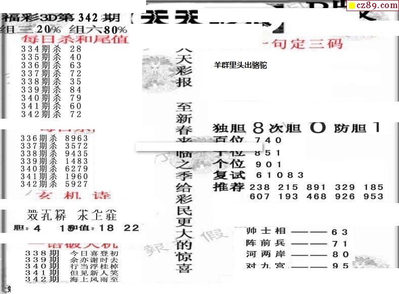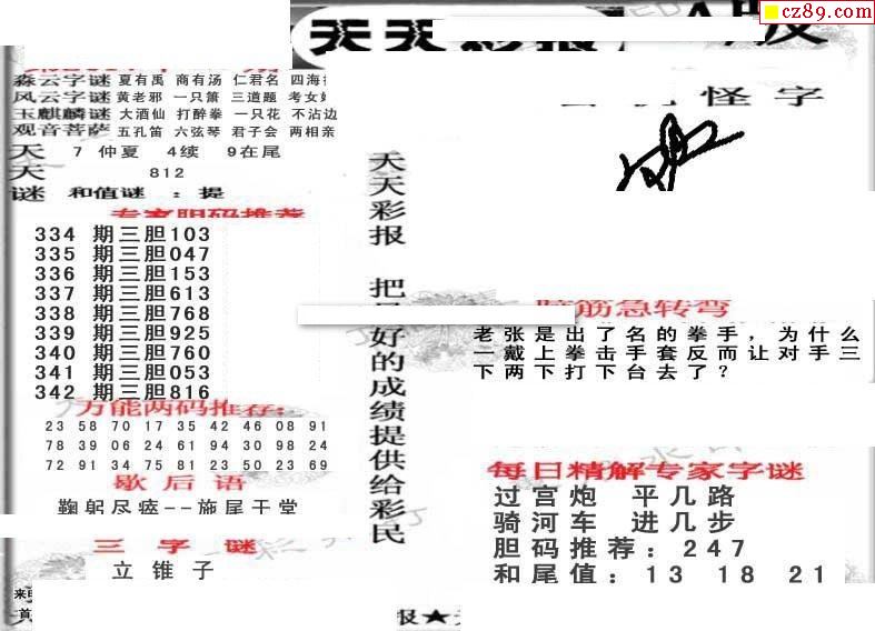 天天彩报19年342期3d画谜专区