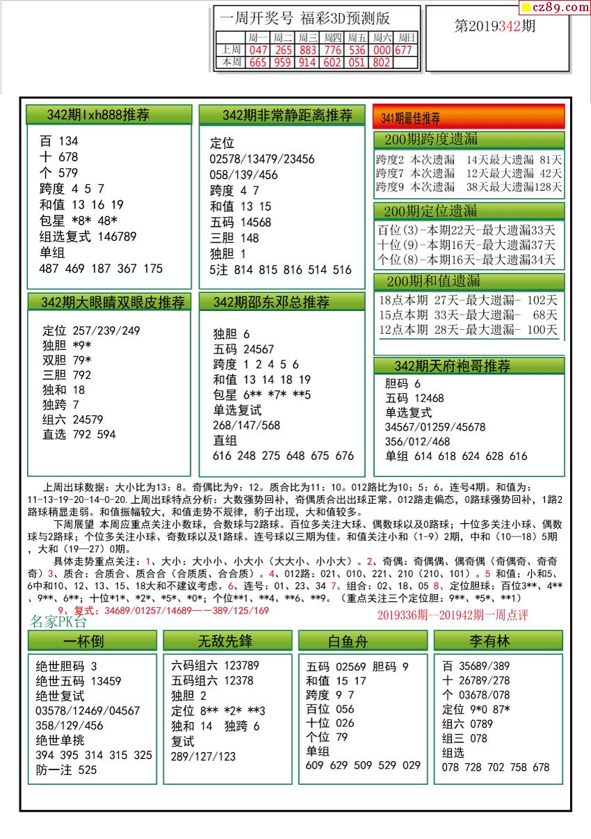 334期 彩吧彩报预测版