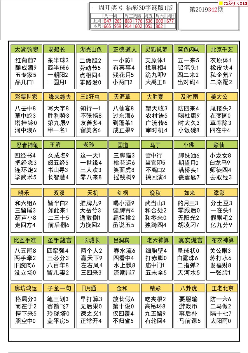 2019342期解太湖字图谜汇总报