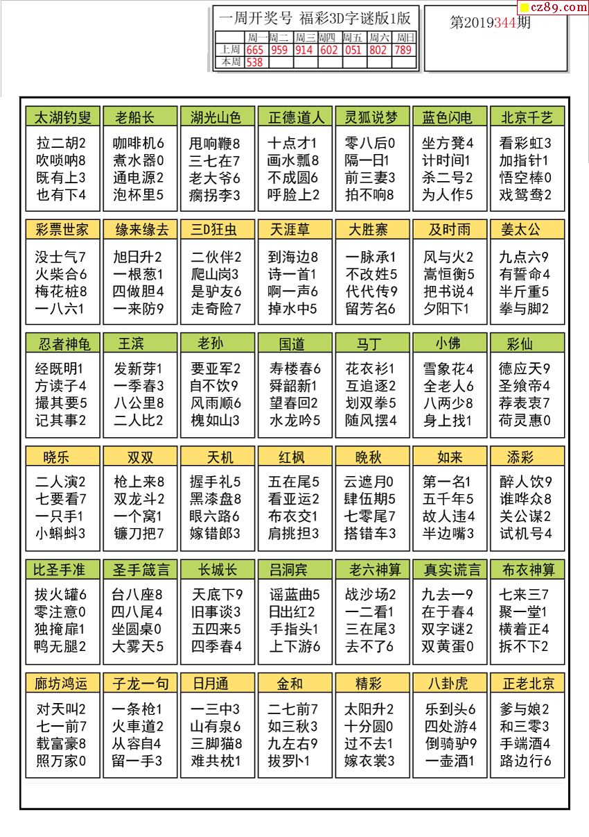 2019344期解太湖字图谜汇总报