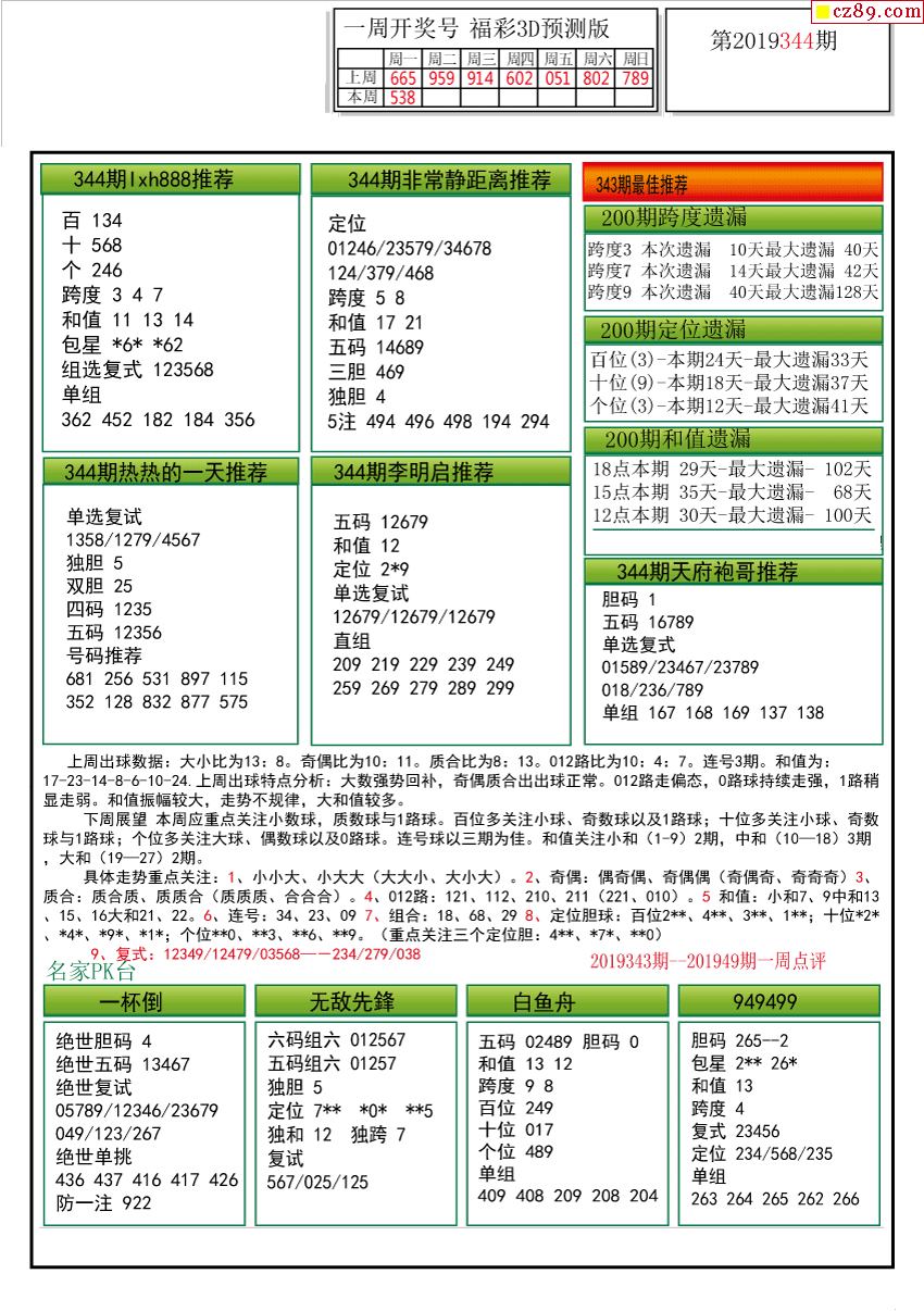 349期 彩吧彩报预测版