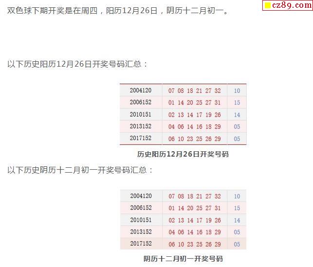 历史上的今天双色球12月26日开奖号码汇总