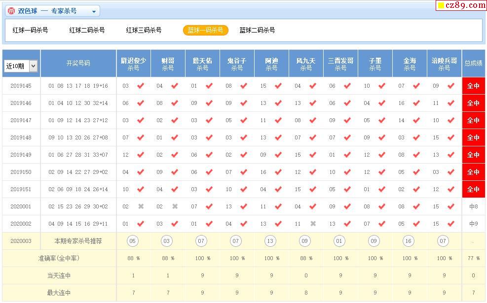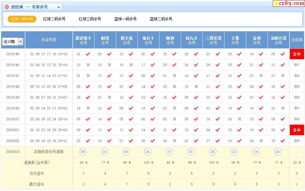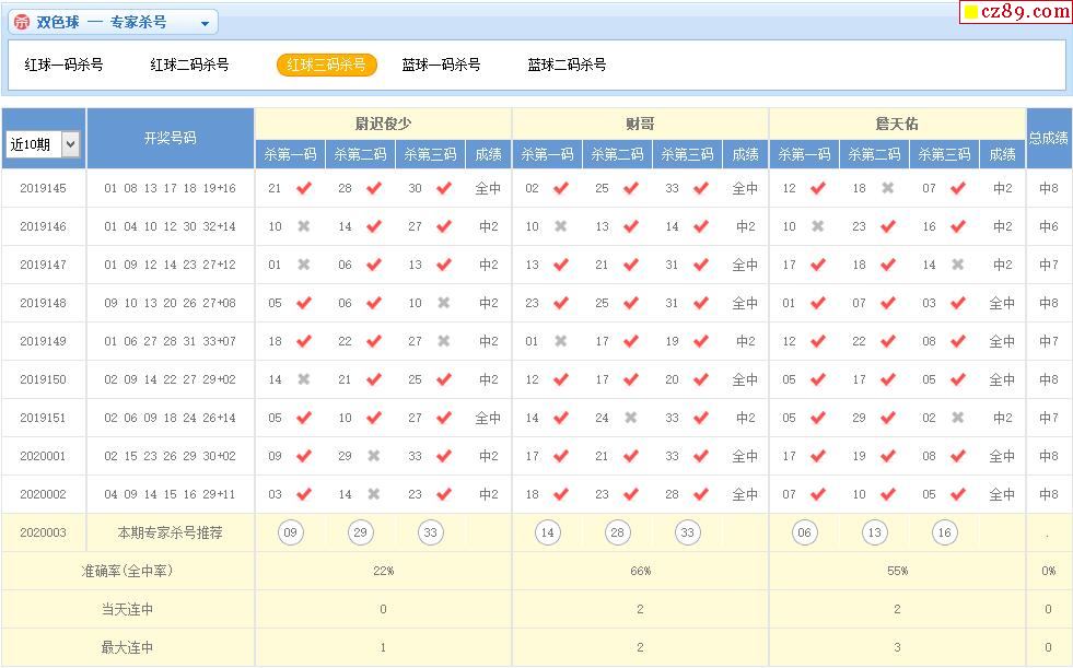 003期彩票专家双色球杀红蓝推荐汇总