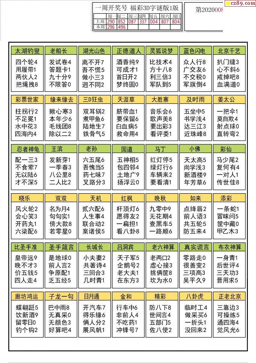 2026030期解太湖3d字图迷汇总报