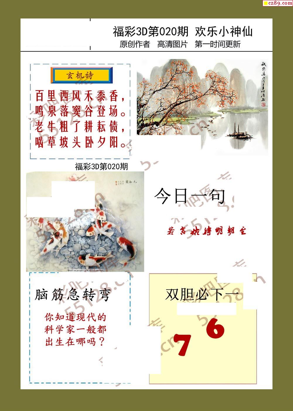 20年福彩3d020期欢乐小神仙预测图